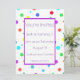 Este convite é impresso em ambos os lados e é divertido, colorido e, evidentemente, pode ser personalizado. Estes convites têm manchas e pontos de cor brilhante impressos em ambos os lados. A frente tem uma área branca para a sua mensagem pessoal, que é enquadrada em roxo. Escolha a fonte e a cor da fonte. Será um complemento divertido para a festa de aniversário de uma criança. Não há cor-de-rosa neles para que possam ser usados para um menino ou uma menina.