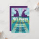 Um convite divertido dos anos 70 para comemorações ou qualquer ocasião, com fundos roxos e calçados de plataforma em fundo azul e verde.