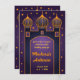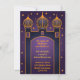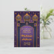 Um belo Convite de festas de Noites Árabe que pode ser usado para aniversários e outras ocasiões. A carta tem uma estrutura de estilo de cúpula árabe amarela e azul. O fundo é um roxo gradiente com estrelas cintilantes no fundo. Muito bonito para todas as ocasiões.