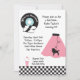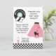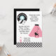 Personalize este convite de festas de estilo salto de meias, preto e azul, da versão 1950, apenas mude os detalhes da festa e você está pronto! Possui chão de xadrez cor-de-rosa e preta, saia de poodle, registros, selas e um milk-shake.