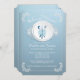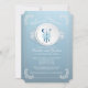 Convite moderno do jantar de ensaio que caracteriza um quadro floral delicado branco com um placemat do laço do vintage, a placa de comensal com uma faca, a forquilha & a colher envolvidas acima com um arco azul bonito, grupo em um fundo do azul do ombre. Lance nosso convite de festas chique do comensal ver sobre uma parte traseira de harmonização da cor para um toque especial extra. Disponível em nossa loja em uma grande variedade de cores populares do casamento e é perfeito para um partido do ensaio do primavera, do partido do ensaio do verão, do jantar de ensaio da queda ou do jantar de ensaio do inverno.