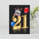 Composição da imagem e da ilustração ou números de ouro 21 para o convite de festas aniversário de 21 anos com parte fofa que, no ouro 21 com balões, o texto do Dentro é totalmente personalizável