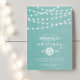 Design de convite de aniversário de verão moderno em chic com simples luzes de cordas brilhantes e elegantes penduradas no topo e uma mistura elegante de fontes modernas e caligráficas em um plano de textura de cor aquática falsa impresso. Um design de pré-disquete simples e na moda, perfeito para o verão! Clique no botão PERSONALIZAR TI para personalizar fontes, mover texto e criar seu próprio design de convite exclusivo.