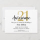 Um convite de festas incrível para um aniversário incrível. Ouro falso (falso) número 21 com a palavra AWESOME (ou qualquer outra que você escolher) em roteiro preto escrito na frente faz disso um convite gentil, chic e na moda para a grande celebração. Surpresa! Há bolinhas dançando de ouro falsas correspondentes no lado inverso adicionando ao sentimento da parte. Veja mais no Zigglets aqui no Zazzle. Nota: Apenas letras falsas ou falsas em ouro e imagens neste convite.