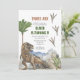 Convite de aniversário de dinossauro para um pouco de Três Rex. Borda de dinossauros realísticos de aquarela.