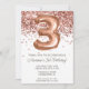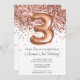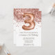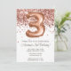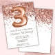 Convite de festas aniversário de 3 anos rosa Dourado e convite de festas-ouro elegante e moderno aniversário de 3 anos para uma garota de 3 anos com escrevendo moderno de escrita e balões de folha divertida.