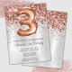 Convite de festas rosa Dourado de Prata aniversário de 3 anos e convite de festas-ouro elegante e moderno aniversário de 3 anos para uma menina de 3 anos com escrevendo moderno de escrita e balões de folha divertida.