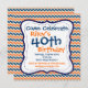 Este convite é mostrado como um convite de festas de aniversário de 40 anos, mas esses modelos de convites de festas de aniversário fofos podem ser facilmente usados para crianças ou adultos, ou podem ser personalizados para qualquer tipo de festa ou evento. Basta preencher o texto com os detalhes do seu próprio partido. Se quiser alterar a cor do texto ou reorganizar as coisas, basta usar o botão laranja "Personalizar". O verso do convite tem o mesmo padrão colorido que o lado frontal.