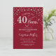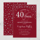 Convite de festas aniversário de 40 anos. Design elegante com falso brilho de prata e vermelho. Saúde para 40 anos! Envie-me uma mensagem se precisar de mais personalização.