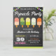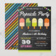 Surpreenda seus convidados com esta festa de aniversário colorida, convidando pop de gelo bonitos com tipografia moderna contra um fundo de quadro. Basta adicionar os detalhes do seu evento neste modelo fácil de usar para torná-lo um convite único. Sacudir a placa para revelar um padrão de listras colorido na parte traseira da placa.