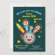 Celebre o primeiro aniversário do seu filho com este convite geométrico e moderno, com uma bela família no espaço! Eles estão por toda a lua, significando, eles são extremamente felizes, é claro, e querem que você se junte à festa! Há um belo foguete e o cão da família também! O fundo deste convite de festas apresenta pontos coloridos que parecem confete festivo e um sol brilhante sorridente. Este cartão é versátil porque é perfeito para o aniversário espacial de um bebê, ou qualquer outra ideia. É fácil personalizar este simples e fofo convite de festas com seus próprios detalhes.