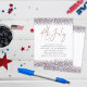 Um valor para o alternativo do ORÇAMENTO em tamanho menor de 4,5 x 5,6" de semirbrilho de 110 lbs, que é de espessura semelhante a um cartão postal (no entanto, não é adequado para uso como cartão postal). POR FAVOR, OBSERVE QUE HÁ UM convite por folha. Convite de festas Vermelho Azul 4 de julho. Estilo de brilho com este design de reluz falso para a celebração do Dia da Independência. Personalize facilmente o texto de acordo com as suas necessidades.