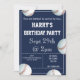 convite de festas com tema de beisebol, editável para que você possa alterar os detalhes de saudação, nome, data/hora, local e RSVP com distribuição, disponível em outras cores.