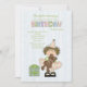 De nosso Cutie do aniversário a coleção vem esta beleza marrom-de cabelo pequena adorável. Está sentando-se para baixo vestindo seu chapéu do partido e abraçando seu urso de ursinho. Um presente é ao lado dela. O cartão é fácil de personalizar com seus fraseio, pia batismal, cor da pia batismal e escolha de seis tipos de papel.