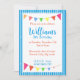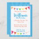 Listras e pennentes azuis - um convite de aniversário fabuloso. Perfeito para uma praia ou crianças para a festa do circo. Totalmente personalizável com os detalhes do seu partido - basta adicionar o texto para dizer a todos quando e onde estar!