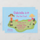 Comece sua celebração fora com este partido adorável do golfe convidar. É para as meninas que golfing o partido. caracteriza uma menina de cabelo triguenha na borda de um verde de colocação e uma menina de cabelo loura nas caudas do porco prontas para pôr a bola. Há dois furos com as bandeiras nelas que estão apontando para. Procure os muitos outros produtos nesta linha. ilustrações de Weible do ©Jessica