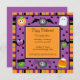 Comece seu partido do Dia das Bruxas fora do direito com nosso convite de festas feliz adorável do Dia das Bruxas apenas para miúdos. O convite caracteriza um fantasma, um bastão, uma abóbora, uma bruxa, um Dracula, um frankenstein, uma aranha preta & um milho de doces ajustados em um fundo roxo & alaranjado. Personalize com sua informação pessoal & você é todo ajusta-se para ir.
