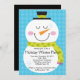 Enfie sua festa natalícia do inverno fora do direito com nosso convite bonito do boneco de neve que caracteriza um boneco de neve que veste um lenço verde com um grupo do chapéu alto em um fundo pontilhado azul. design do ©Pink