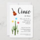 Convite de festas Branco Cinco de Mayo Cactus Pret
