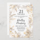 Rosas de arte elegantes de linha dourada e deixa em volta os detalhes do seu aniversário de 21 anos.