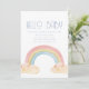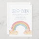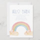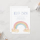 Se você ama um estilo simples de boho, este convite é certo para você. O convite apresenta um design elegante, com um fundo branco e suave. No centro, os detalhes do partido são lindamente escritos num texto azul que exumenta um ar de sofisticação. Um arco-íris de aquarela macia fica no fundo. Convide convidados para a sua festa de chá de fraldas em estilo. A cor e o texto em segundo plano são editáveis.