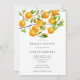Cartão de chá de panela para o tema cítricos russos com ilustração aquarela de frutas laranja em um galho de árvore. Perfeito para uma comemoração de verão.