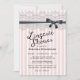 Um pouco impertinente e um pouco agradável, de que são o que este design do partido da lingerie é sobre. Com um laço branco e uma beira preta da fita que seja reminiscente de uma liga pequena bonita, e um la cor-de-rosa e branco bonito do la do fundo da listra oh! O chique, design Francês-inspirado é perfeito para uma reunião e para gifting o bonito noiva-à-está com algum vestuário do nighttime da lua de mel!