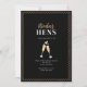 Jogue uma festa épica para a noiva a ser! Este design preto e ouro bonito e elegante com óculos de champanhe e detalhes cardíacos é perfeito para qualquer festa ou noite de galinha! Personalize com mais detalhes e o itinerário ou a programação dos eventos no verso. Este modelo editável e imprimível está disponível como um download digital.