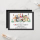 Convite de festas de Natal coquetel único com uma cena de coquetel de aquarela adornada com galhos de pínus de natal e um enfeites de natal.