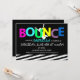 Salte certo neste partido! Este convite é para um salto, um parque do trampolim ou um partido. Tem uma beira listrada diagonal preto e branco na parte inferior. A palavra "SALTO" está nas letras brilhantes grandes através da parte superior do convite. Há uma silhueta de uma menina no salto branco atrás da palavra. Personalize com sua informação do partido. verifique para fora o muito outro design e produtos em nossa loja.