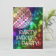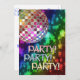Convite de festas com bola de disco e arco-íris de