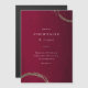 Um design elegante de cocktail, por Stacey Meacham, com um fundo textural vermelho profundo e anéis de cocktail de ouro. O dorso é magnético. Perfeito para negócios ou eventos pessoais.