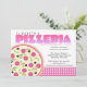 Nosso convite de festas cor-de-rosa e roxo da pizaria fará todos com fome para uma torta de pizza! As características de design uma grande pizza suprema ao lado de um tablecloth checkered cor-de-rosa e roxo e da palavra "pizaria."