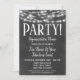 Um convite de festas corporativo preto e branco divertido com luzes brilhantes no topo.