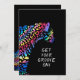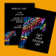 Faça uma declaração com este convite de festas vibrante, feroz e inesquecível. Apresentando uma onça-arco-íris espantosa sobre um fundo preto elegante, este convite é perfeito para colocar a cena de um evento eletrificante.