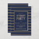Este convite de festas elegante e elegante da aposentadoria pode ser personalizado para sua ocasião especial. Caracteriza um quadro do ouro e linhas do fundo do ouro. A cor do fundo é azul marinho, mas pode ser mudada ao seu gosto. O texto pode igualmente ser personalizado para seu evento. Um perfeito convida para a celebração especial de um aposentado.