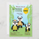 Ursos panda pretos e brancos são muito caros para as crianças. Convide sua família e seus amigos para a sua doce festa de aniversário familiar, usando este convite fofo. Uma família de ursos panda vestida para festa está celebrando o primeiro ano de vida de seu pequeno urso panda na floresta de bambu! O filhote está segurando um balão. Todas as palavras neste convite são fáceis de personalizar com seus detalhes pessoais, como nomes, data e hora; altere a fonte ou a cor como quiser. O verso apresenta a silhueta da floresta de bambu, um balão amarelo subindo no ar, e um confete colorido.
