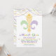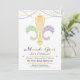 Uma flor de lis laçado do estilo em cores tradicionais do carnaval ajusta o tom para este convite colorido e brilhante. A parte traseira do cartão é decorada com miçanga. Fácil super personalizar com seu próprio texto. Ilustração original pelo pj_design.