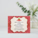 Este convite doce da baga caracteriza o fundo vermelho e branco das bolinhas. Uma fita vermelha, e uma etiqueta bonito super do vintage. Ilustrado com as três morangos doces.