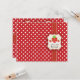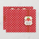 O convite de festas da morango este convite doce da baga caracteriza o fundo vermelho e branco das bolinhas. Uma fita vermelha, e uma etiqueta bonito super do vintage. Ilustrado com as três morangos doces.