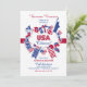 Um convite patriótico em vermelho, no branco e em azul e em caracterizar imagens do que os E.U. são conhecidos para. O convite perfeito a uma celebração da nacionalização. (<a href="http://www.freepik.com/free-vector/american-independence-day-badge_903719.htm">Projetado por Freepik</a>). <br/><br/>O cartão é fácil de personalizar com seus fraseio, opções da pia batismal, do cor da pia batismal, as de papel da forma e escolha de seis tipos de papel<br/><br/>Não exatamente que você está procurando? Todos nossos produtos podem ser projetados para encontrar suas necessidades em nenhuma sobretaxa<br/><br/>Contacte-nos simplesmente em heartfelthelper@gmail.com. <br/><br/>Produtos de coordenação disponíveis: Apenas pergunte-nos!