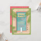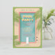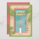 Convite de festas de Piscina com piscina ilustrada no estilo moderno do médio. Designs incluem elementos de blues, e pinks, frondes de esquerda de palma, piscina de natação e design.