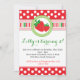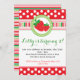 Convite de festas vermelho, branco e verde adorável do tema da morango das bolinhas e da listra!