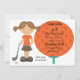 Comece a comemorar com este adorável convite para a festa de golfe. É para uma festa de golfe para meninas. ele apresenta uma garota cabeleira ao lado de uma grande bola de golfe laranja. A informação da festa está escrita na bola de ouro, que está em uma lágrima. Procure os muitos outros produtos nessa linha. ©Jessica Weible Illustrations