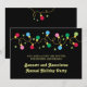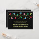 Convite festivo. Apresenta luzes de Natal em cores brilhantes num fundo preto. Excelente para um evento de escritório, festa corporativa ou cerimônia de prêmio. Pode ser personalizado para uma festa da família também.
