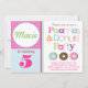 Convite de festas adorável, das rosquinhas e dos pijamas do tema por Maryella moderno. Aperfeiçoe para a festa de aniversário do pequeno almoço da sua criança ou o todo o amanhecer ou partido do tema da rosquinha.