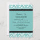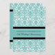 Cartão de convite de festas de aniversário de casamento em azul-turquesa elegante, azul-turquesa, preto-e-branco-cor damasco floral, delicado e contemporâneo. Personalizável com os detalhes do seu partido.