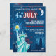 A Estátua da Liberdade e um Tio Amigável Sam Moon convidam-no para uma festa de 4 de julho. Um plano de fogo de artifício completa este convite divertido / retrô / moderno. Excelente para uma reunião de churrasco, bolachas ou família.