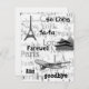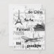 Um convite de festas de adeus feito em preto e branco, com os nomes de cidades e do grampo grandes art. do divertimento personaliza o texto para serir suas necessidades do partido.
