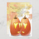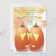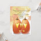 Um jeito bonito de anunciar ou celebrar seu noivado da temporada de Halloween. Em um fundo de folhas do outono, dois adoráveis jack-o-lanternas ficam lado a lado. Seus olhos de carcaça estão em formas de coração.O cartão é fácil de personalizar com seu texto, fonte, cor da fonte e escolha de seis tipos de papel.